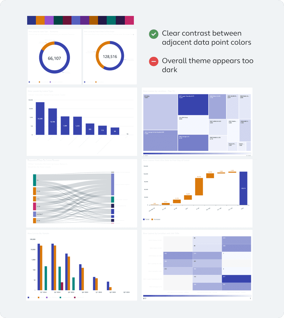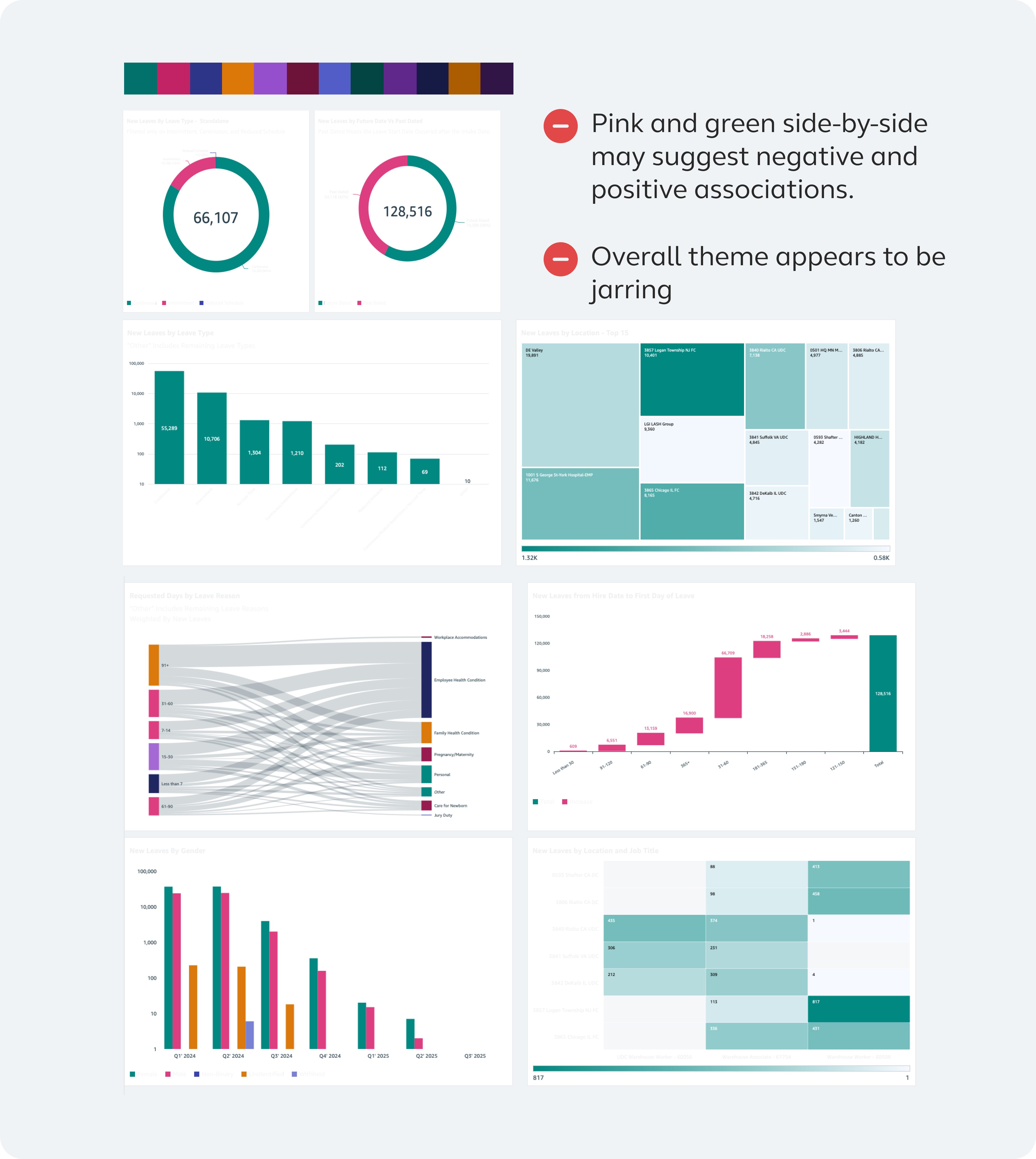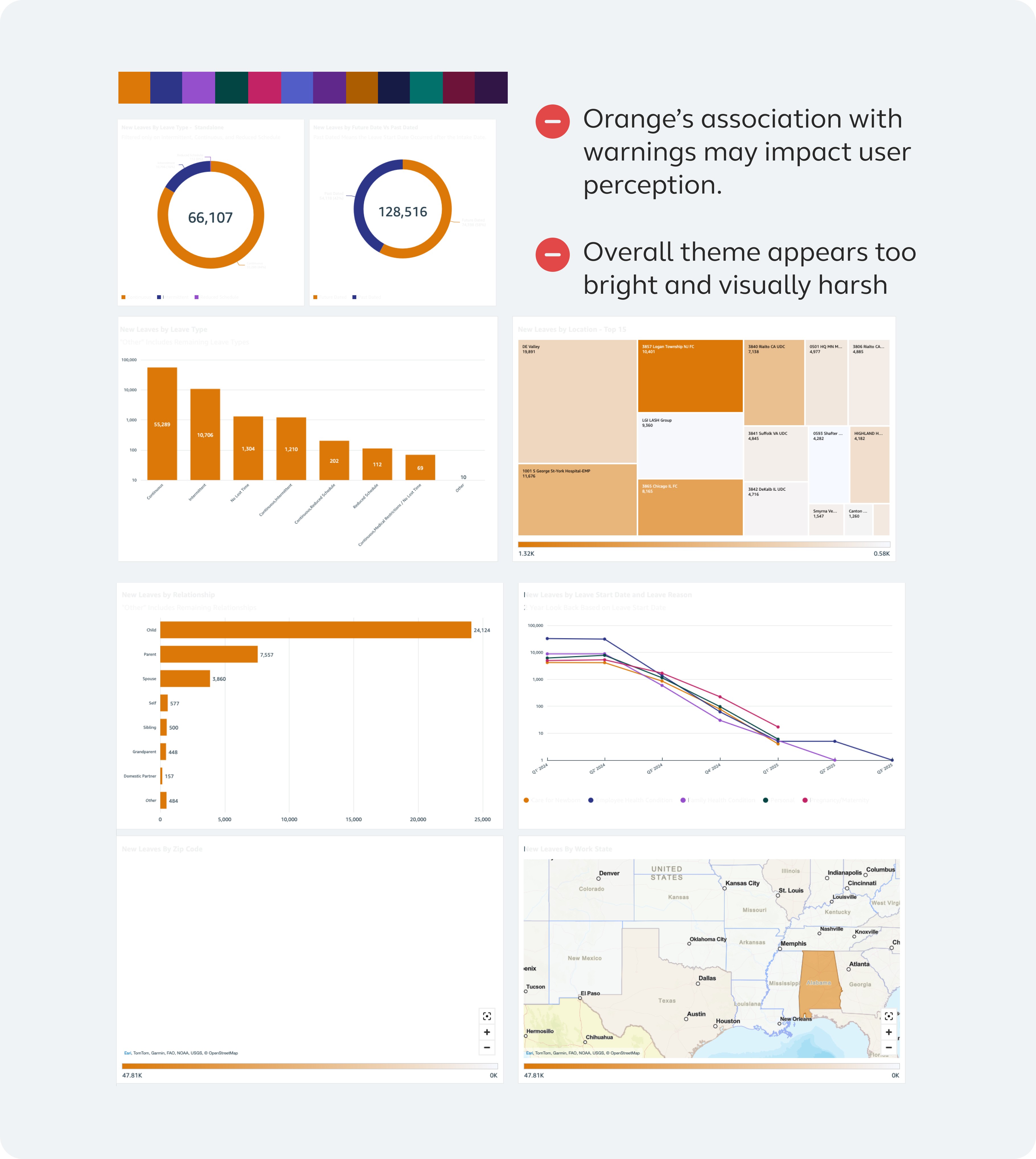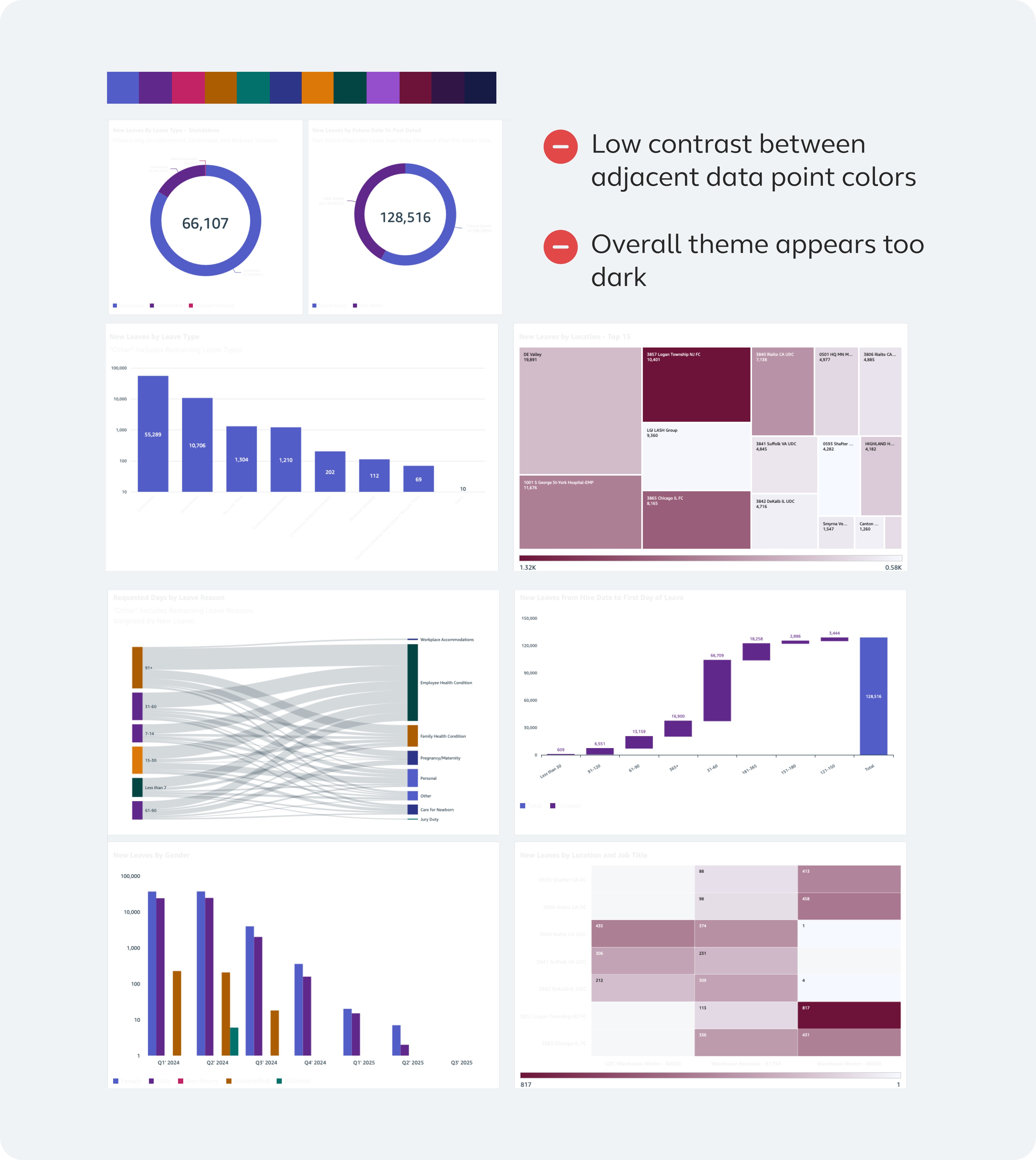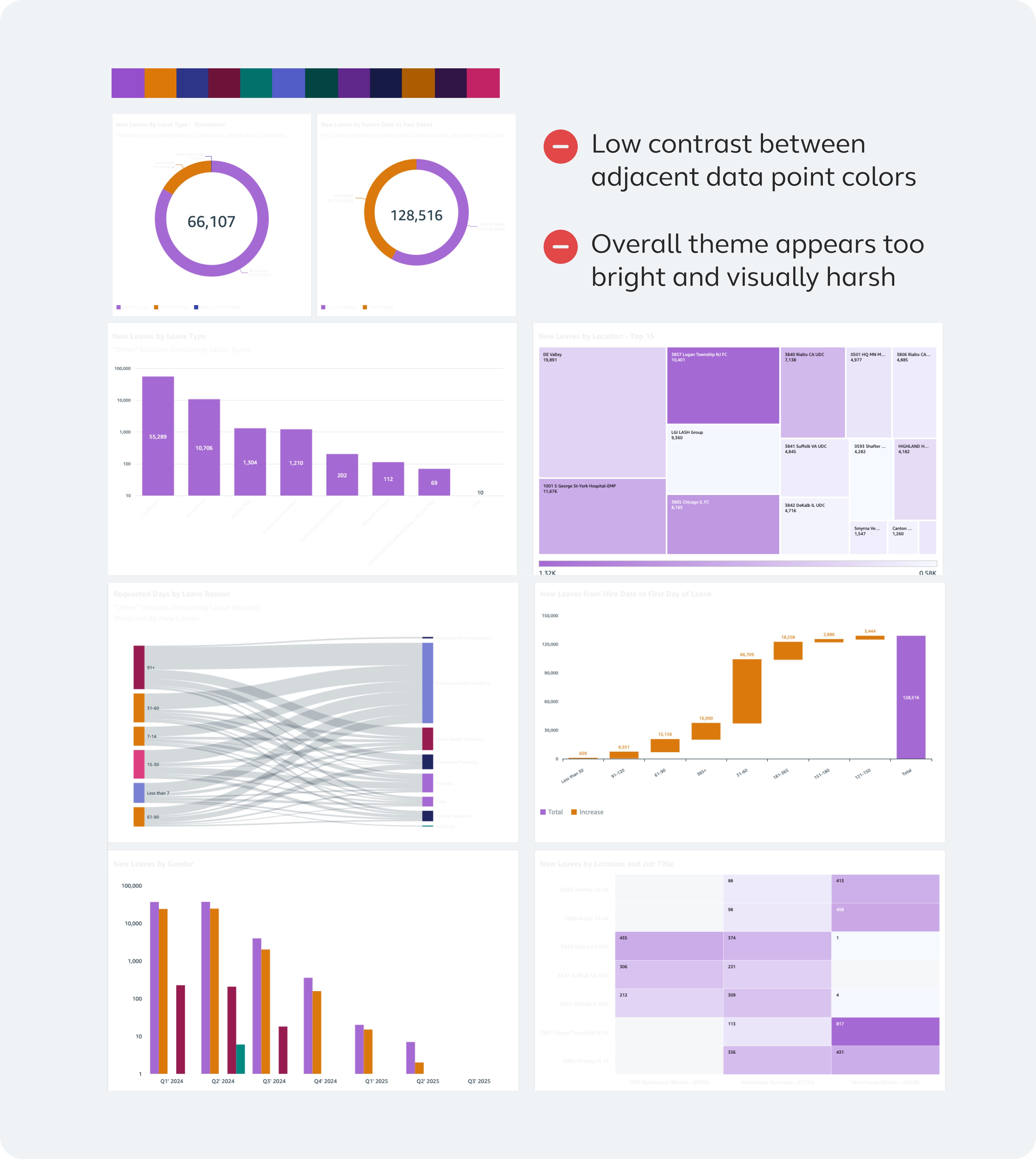 Insight: The new color palette demonstrates high usability across typical dashboard scenarios. It enhances both data comprehension and visual clarity, providing an effective experience for users.